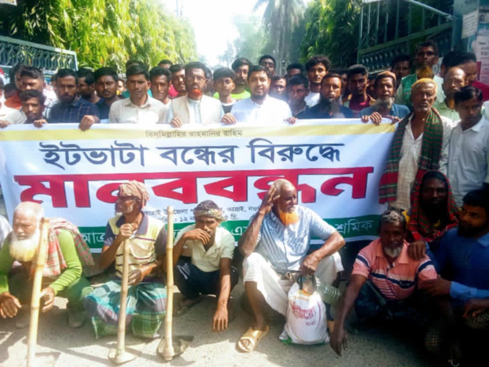 মোঃ ফিরোজ আহমেদ, বিশেষ প্রতিনিধি: চলতি মৌসুমে অবৈধ ইটভাটা বন্ধে সরকারি নির্দেশনার প্রতিবাদে নওগাঁর আত্রাই উপজেলায় মানববন্ধন করেছে ইটভাটা শ্রমিক ও মালিক সমিতি। কোটি কোটি টাকার বিনিয়োগ ও হাজারো শ্রমিকের জীবন-জীবিকা রক্ষায় ইটভাটা চালুর অনুমতি চেয়ে বুধবার (১২ নভেম্বর) সকাল সাড়ে ১১টায় উপজেলা পরিষদের প্রধান ফটকের সামনে ঘণ্টাব্যাপী এই কর্মসূচি অনুষ্ঠিত হয়।