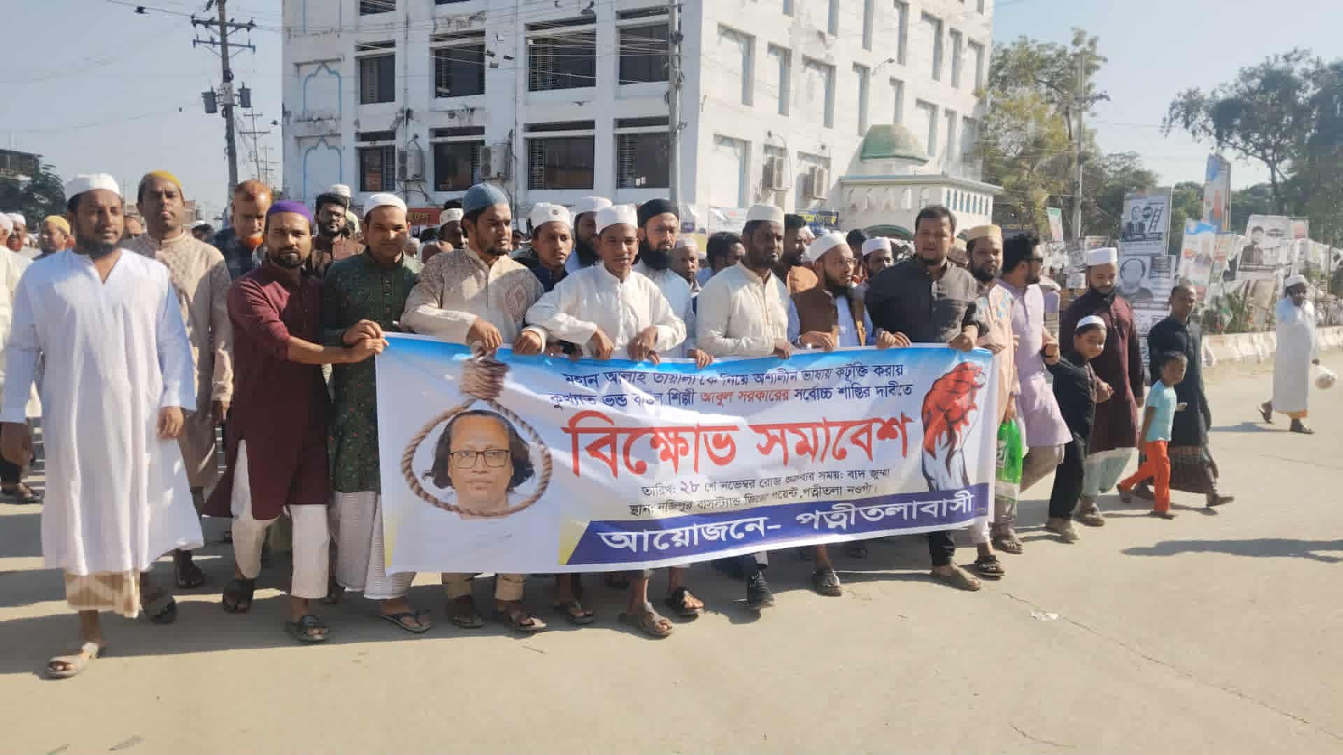 মাসুদ রানা,পত্নীতলা (নওগাঁ) প্রতিনিধিঃ আল্লাহ কে নিয়ে কটুক্তিকারী বাউল আবুল সরকারের সর্বোচ্চ শাস্তি ফাঁসির দাবিতে পত্নীতলায় বিক্ষোভ মিছিল ও সমাবেশ অনুষ্ঠিত হয়েছে । শুক্রবার (২৮নভেম্বর) বাদ জুমা পত্নীতলাবাসীর ব্যানারে নজিপুর বাসস্ট্যান্ড জিরো পয়েন্টে বিক্ষোভ অনুষ্ঠিত হয়।