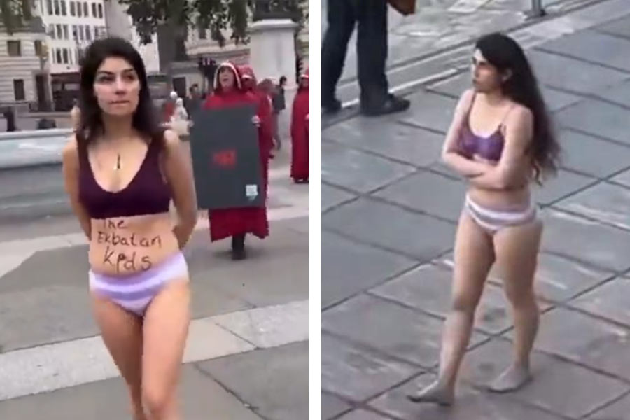 ইরানি তরুণীর সমর্থনে তাঁর বিদ্রোহের পোশাকেই লন্ডনের রাস্তায় প্রতিবাদ! তেহরান এখনও নীরবই