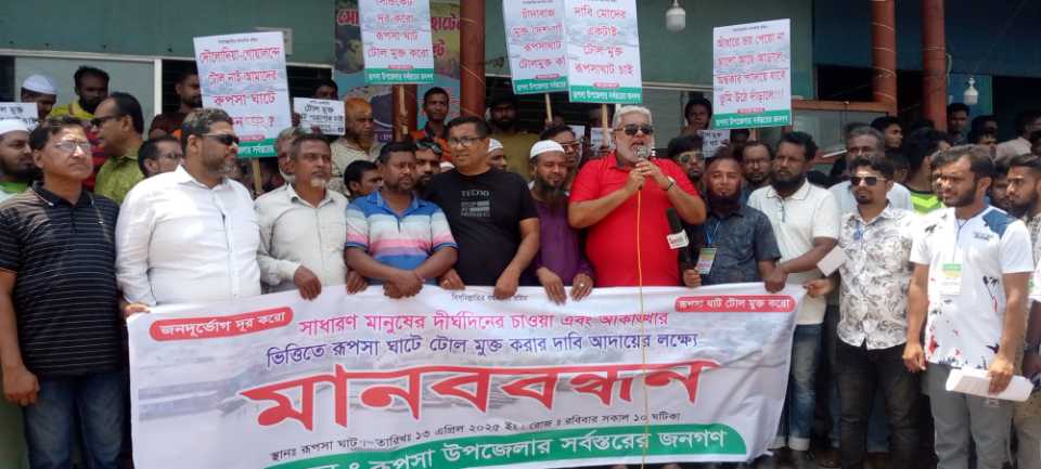 ঐতিহ্যবাহী রূপসা ঘাটের টোলমুক্তির দাবিতে মানববন্ধন কর্মসূচি অনুষ্ঠিত