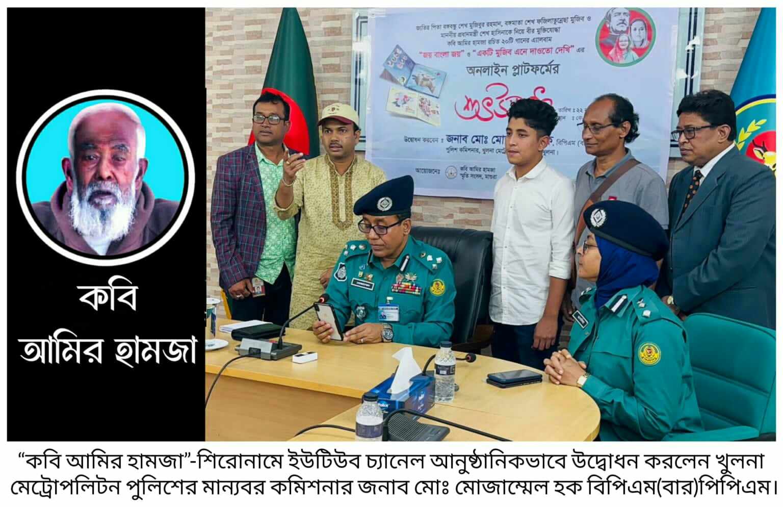 খুলনা মেট্রোপলিটন পুলিশের সদর দপ্তরে কেএমপি কমিশনার মোঃ মোজাম্মেল হক বিপিএম(বার)পিপিএম কবি আমির হামজা” শিরোনামে ইউটিউব চ্যানেল আনুষ্ঠানিকভাবে উদ্বোধন করেন। এ সময় কবির পরিবার থেকে কবির ছেলে যশোর জেলা পরিষদের সিইও মো: আসাদুজ্জামান, ও পরিবারের সদস্য সহ কেএমপির এর উর্দ্ধতন কর্মকর্তাবৃন্দ, সঙ্গীত পরিচালক পলাশ ঢালী, সুরকার হাফিজুর রহমান ও Youtuber MD Liton Hosain উপস্থিত ছিলেন।