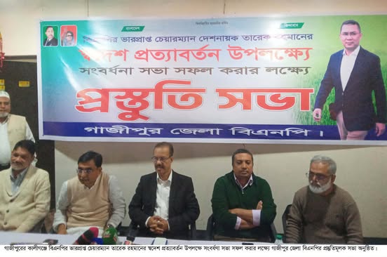 কালীগঞ্জে তারেক রহমানের স্বদেশ প্রত্যাবর্তন উপলক্ষে প্রস্তুতিমূলক সভা অনুষ্টিত