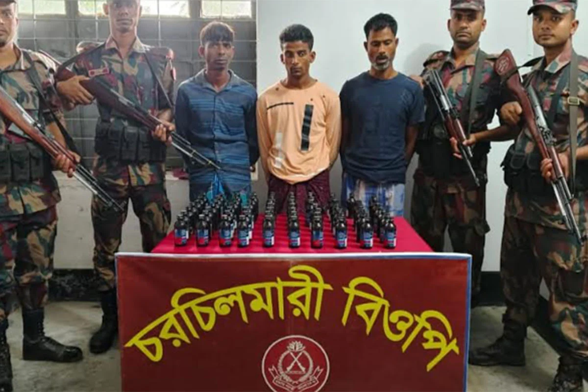 বিজ্ঞপ্তিতে জানানো হয়, শুক্রবার সকালে দৌলতপুর উপজেলার চরচিলমারী ইউনিয়নের ৮৪/২ সীমান্ত পিলারসংলগ্ন ডিগ্রীরচর এলাকায় মো. মহেশ উদ্দিন মন্ডলের ছেলে মো. নিজাম মন্ডল (৪৫) এর বাড়িতে অভিযান চালানো হয়। অভিযানে ভারতের মুর্শিদাবাদ জেলার বাসিন্দা মো. জুয়েল মন্ডল (২৫), মো. রাকিবুল মন্ডল (৩৫) ও মো. বাপন মন্ডলকে (৩২) ৬৯ বোতল ফেন্সিডিলসহ আটক করা হয়। তবে ওই সময় দুই বাংলাদেশি নাগরিক মো. নিজাম মন্ডল (৪৫) ও মো. শরীফ মন্ডল (২৫) কৌশলে পালিয়ে যায়।