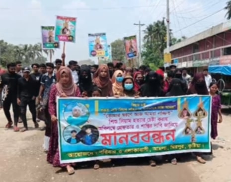 কুষ্টিয়ার আমলাতে শিশু সিয়াম হত্যার চেষ্টাকারীদের গ্রেফতার ও ফাঁসির দাবিতে মানববন্ধন