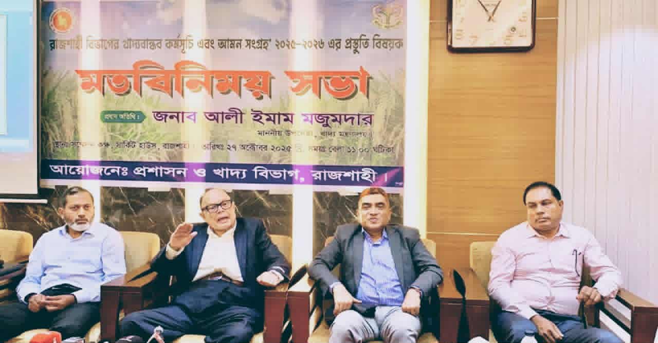 আজ সোমবার দুপুরে রাজশাহী সার্কিট হাউসে বিভাগের খাদ্যবান্ধব কর্মসূচি এবং আসন্ন মৌসুমে আমন সংগ্রহের লক্ষ্যমাত্রা নিয়ে সংশ্লিষ্ট কর্মকর্তাদের সঙ্গে মতবিনিময় কালে তিনি এ সব কথা জানান।