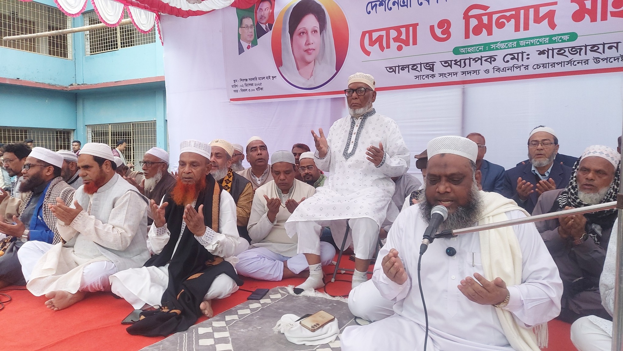 # মো. শফিকুল ইসলাম, শিবগঞ্জ (চাঁপাইনবাবগঞ্জ) সংবাদদাতাঃ বিএনপি চেয়ারপার্সন ও সাবেক প্রধানমন্ত্রী বেগম খালেদা জিয়ার রোগমুক্তি ও সুস্থতা কামনায় চাঁপাইনবাবগঞ্জের শিবগঞ্জে দোয়া মাহফিল অনুষ্ঠিত হয়েছে। মঙ্গলবার বাদ আসর শিবগঞ্জ সরকারি মডেল হাই স্কুল মাঠে এ দোয়া মাহফিল অনুষ্ঠিত হয়। এতে প্রধান অতিথি ছিলেন বিএনপির চেয়ারপার্সনের উপদেষ্টা ও সাবেক সংসদ সদস্য বীরমুক্তিযোদ্ধা অধ্যাপক শাহজাহান মিঞা।