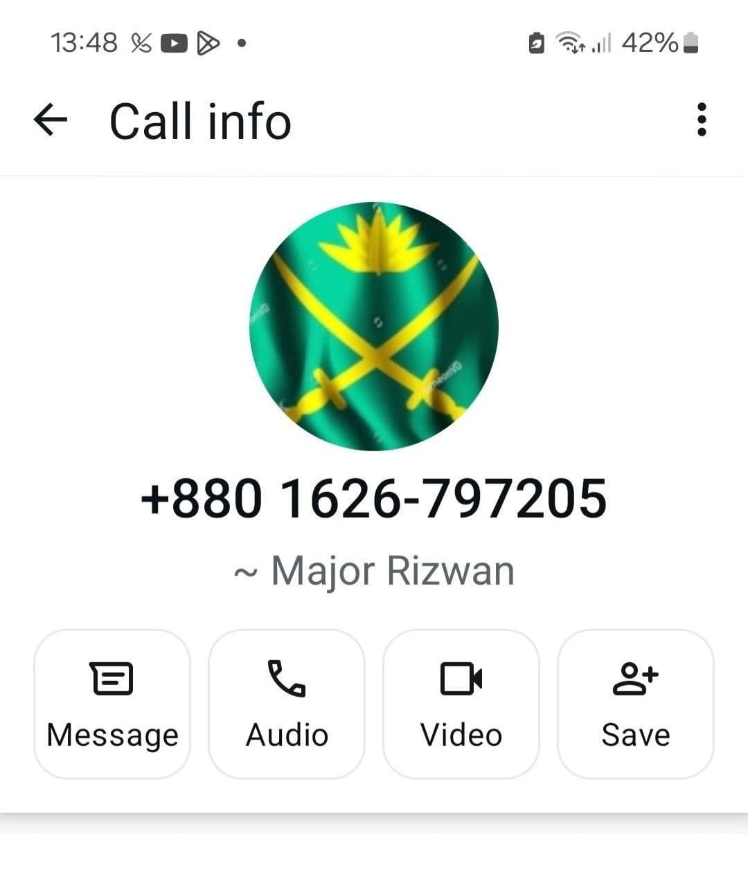 বিশেষ প্রতিনিধি: কলারের দুইজনের একজন নিজেকে মেজর, অন্যজন এসপি পরিচয় দিয়ে দেশের সমসাময়িক রাজনৈতিক ও সামাজিক অবস্থা সহ বিভিন্ন বিষয়ে আলোকপাত করে পরিচিতি সহ সামনা-সামনি আরো কিছু গোপনীয় কথা বলার জন্য কোন সেনা ক্যাম্পে ও এসপি অফিসে প্রথমে চা-কফির দাওয়াত দিচ্ছে। দ্বিতীয় বার কল করে নিজ নিজ অফিসের বিভিন্ন সমস্যার কথা তুলে ধরে আর্থিক ধান্দা করার চেষ্টাও করছে। কলারের নম্বর দুটির একটি মেজর রিজওয়ান-০১৬২৬৭৯৭২০৫ অন্যটি এপি মুনির-০১৩৪০৬১৫৫৩৩। এই নম্বর দুটি সঠিক ভাবে যাচাই-বাছাই না করে কোন ধরনের সাহায্য কিংবা নিজের ও অন্যের কোন বিষয়ে তথ্য চাইলে শেয়ার না করার জন্য আইন শৃঙ্খলা বাহিনীর পক্ষ থেকে অনুরোধ করা হয়েছে।
