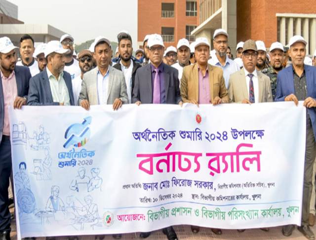 সারাদেশের মতো খুলনায় মঙ্গলবার ১০ ডিসেম্বর থেকে খুলনাতেও অর্থনৈতিক শুমারি, ২০২৪ শুরু হয়েছে। এ উপলক্ষ্যে সকালে খুলনা বিভাগীয় কমিশনারের কার্যালয় প্রাঙ্গণ থেকে এক উদ্বোধনী শোভাযাত্রা অনুষ্ঠিত হয়। শোভাযাত্রাটি উদ্বোধন করেন বিভাগীয় কমিশনার মোঃ ফিরোজ সরকার। শোভাযাত্রাটি বিভাগীয় কমিশনারের কার্যালয় প্রাঙ্গণ থেকে শুরু হয়ে বিভিন্ন সড়ক প্রদক্ষিণ করে একই স্থানে এসে শেষ হয়।