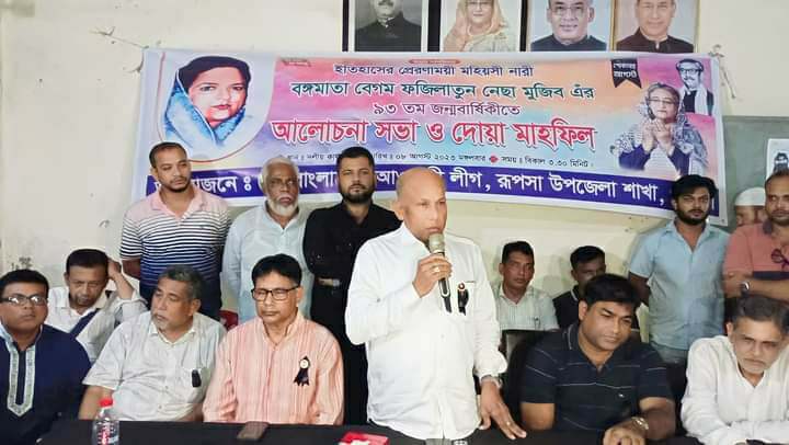 খুলনায় যথাযোগ্য মর্যাদায় মহীয়সী নারী বেগম ফজিলাতুন্নেছার ৯৩ তম জন্মবার্ষিকী পালিত হয়েছে। এদিকে খুলনায় বেগম ফজিলাতুন্নেছার ৯৩তম জন্মবার্ষিকী উপলক্ষে বিশেষ আলোচনা সভা, সেলাই মেশিন বিতরণ, বৃক্ষ রোপন সহ বিশেষ দোয়া মাহফিল অনুষ্ঠিত হয়েছে। এরই ধারাবাহিকতা আজ ৮ আগষ্ট আগস্ট মঙ্গলবার সকাল ১০টায় খুলনা বিশ্ববিদ্যালয়ের বঙ্গমাতা বেগম ফজিলাতুন্নেছা মুজিব হলে স্থাপিত ‘মহীয়সী বঙ্গমাতা’ ম্যুরালে শ্রদ্ধাঞ্জলি অর্পণ করেন,জোহর খুলনা বিশ্ববিদ্যালয় কেন্দ্রীয় জামে মসজিদ ও প্রশাসন ভবন সংলগ্ন জামে মসজিদে দোয়া মাহফিল। এছাড়া বিকেল ৫.১৫ মিনিটের বঙ্গমাতা বেগম ফজিলাতুন্নেছা মুজিব হলে আলোচনা সভা অনুষ্ঠিত হয়।