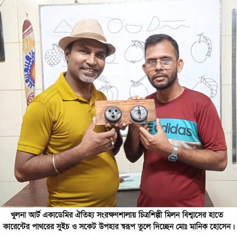 খুলনা প্রতিনিধিঃ খুলনা আর্ট একাডেমির ঐতিহ্য সংরক্ষণশালায় বিশিষ্ট ব্যবসায়ী মোঃ মানিক হোসেন একটি অনন্য উপহার তুলে দেন চিত্রশিল্পী মিলন বিশ্বাসের হাতে। আশির দশকের এক মূল্যবান নিদর্শন—কারেন্টের সুইচ বোর্ড ও সকেট তিনি সংরক্ষণশালায় প্রদান করেন। খুলনা আর্ট একাডেমির সামনেই তার ব্যবসা প্রতিষ্ঠান।সেই সূত্রে মোঃ মানিক হোসেনের সঙ্গে চিত্রশিল্পী মিলন বিশ্বাসের পরিচয় ঘটে।