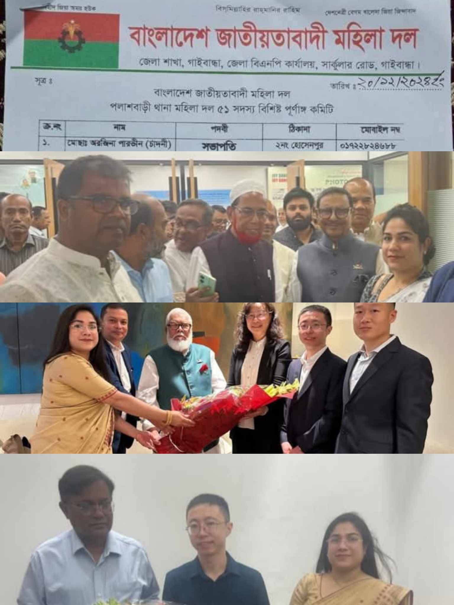 তালিকা অনুসন্ধানে দেখা গেছে পলাশবাড়ী উপজেলা মহিলাদলে যে নারীকে সভাপতি করা হয়েছে তার নাম আরজিনা পারভীন চাদনী। ইতিপূর্বে তিনি আওয়ামীলীগের রাজনীতির সাথে যুক্ত ছিলেন ও সংরক্ষিত মহিলা আসনের এমপি প্রার্থী হিসাবে মনোনয়ন পত্র সংগ্রহ করেছেন এবং তিনি সেই সময় বিএনপি'র বিরুদ্ধে সক্রিয় ভূমিকা পালন করেছেন। এটি নিয়ে বিএনপিসহ এর অঙ্গসংগঠন গুলোর নেতা-কর্মীদের মধ্যে মিশ্র প্রতিক্রিয়া দেখা গেছে। অনেকেই প্রতিবাদ জানিয়ে ফেসবুকে পোস্ট দিয়েছেন। তাদের কেউ কেউ প্রকাশ্যে মন্তব্য করেছেন যে টাকার বিনিময়ে এই কমিটি দেয়া হয়েছে। ঐ কমিটিতে যে শুধুমাত্র চাঁদনীই চিহ্নিত আওয়ামীলীগ তা নয়, সাংগাঠনিক পদে যাকে দায়িত্ব দেয়া হয়েছে তিনিও একজন সক্রিয় মহিলা আওয়ামীলীগ কর্মী ছিলেন।