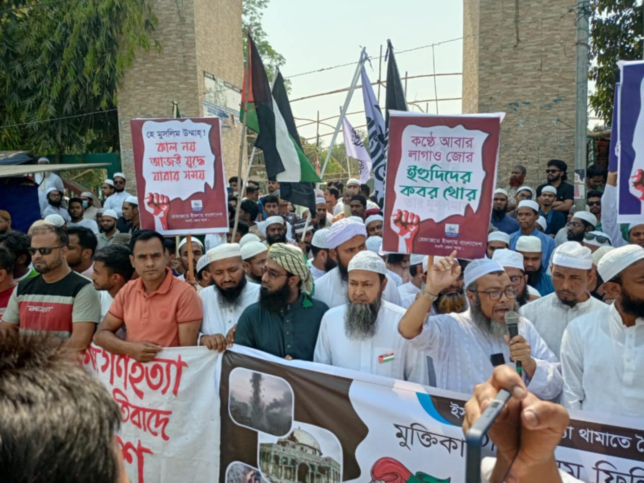 গাজাবাসির উপর নির্যাতনের প্রতিবাদে নওগাঁয় হেফাজতে ইসলামের বিক্ষোভ সমাবেশ