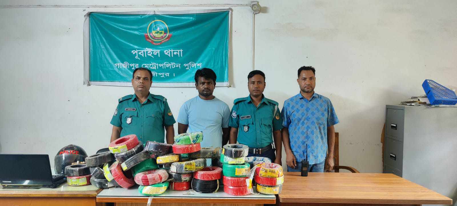 গাজীপুরের পূবাইলে চোরাই মালামাল সহ চোর আটক