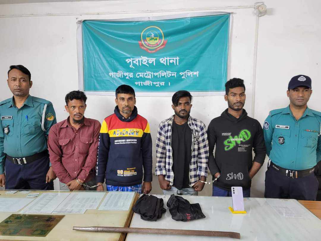 গাজীপুর মহানগরীর পূবাইলে নির্মাণাধীন উন্মুক্ত একটি বাড়িতে ডাকাতির ঘটনাটির ঘটনার ৭ দিনের মাথায় লুণ্ঠিত মালামালের আংশিক উদারসহ চার ডাকাতকে করেছে মেট্রোপলিটন পূবাইল থানা পুলিশ ।