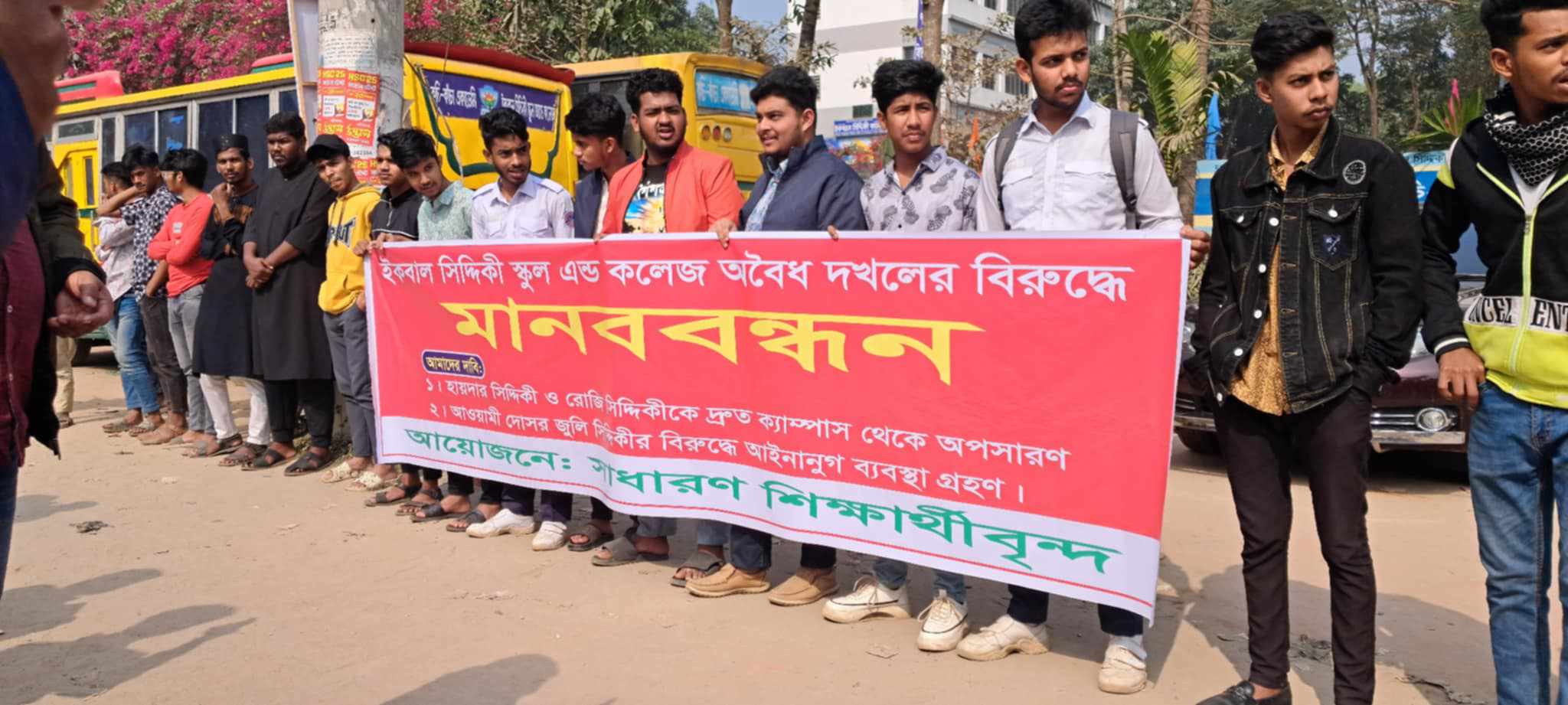 সাধারণ শিক্ষার্থীদের ব্যানার মানববন্ধন উপস্থিত প্রাক্তন শিক্ষার্থী সুজন শেখ, রেদুয়ান ও লাবিব বলেন, ইকবাল সিদ্দিকী এডুকেশন সোসাইটি হচ্ছে সরকার অনুমোদিত একটি অলাভজনক স্বেচ্ছাসেবী সংস্থা যার রেজিস্ট্রেশন নম্বর: ৮০৭২ (৯৩)/০৮।