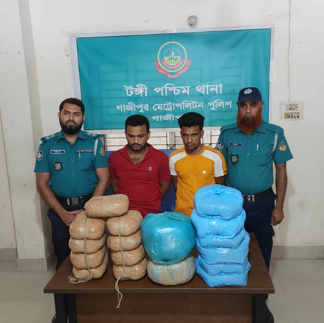 গাজীপুর মহানগরীর টঙ্গী পশ্চিম থানা পুলিশের বিশেষ অভিযানে ২০ কেজি গাঁজা ও গাঁজা বিক্রির নগদ পঁচিশ হাজার টাকা সহ দুইজন মাদক ব্যবসায়ী আটক টঙ্গী পশ্চিম থানার এসআই সাইফুল ইসলাম ও এসআই আব্দুল আউয়াল ও সঙ্গীয় ফোর্সের বিশেষ অভিযানে টঙ্গী পশ্চিম থানাধীন দক্ষিণ আউচপাড়া গিয়াস উদ্দিন খানের বাড়ীর ভাড়াটিয়া আসামী ১। মোঃ শামীম মিয়া(২৬), পিতা- মোঃ রহিম, মাতা- সাহানা, সাং মেষেরচর নামা, থানা- বকশিগঞ্জ, জেলা- জামালপুর এবং অপর আসামী ২। মোঃ মানিক মিয়া(২৯), পিতা-শামচুল, মাতা- নুরজাহান সাং সভারচর প্রাথমিক বিদ্যালয়ের পাশে, থানা- ইসলামপুর, জেলা- জামালপুর দ্বয়ের ভাড়া বাসা হইতে অদ্য ০৩/০৪/২০২৪ইং সকাল সাড়ে ছয়টার দিকে ২০ কেজি গাঁজা ও গাঁজা বিক্রির নগদ পঁচিশ হাজার টাকা সহ উক্ত আসামীদেরকে আটক করা হয়।