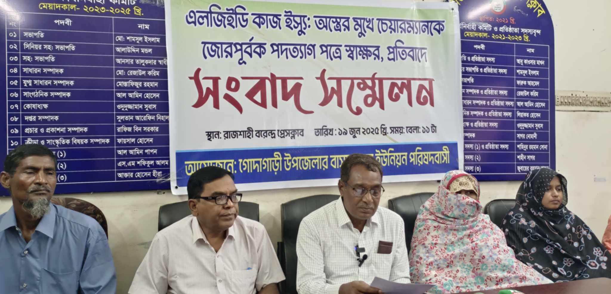 রাজশাহীর গোদাগাড়ী উপজেলার ৮ নং বাসুদেবপুর ইউনিয়ন পরিষদের চেয়ারম্যান নজরুল ইসলামকে জোরকরে পদত্যাগ পত্রে স্বাক্ষর করিয়ে নেয়া হয়েছে। বৃহস্পতিবার বেলা ১১টায় রাজশাহী বরেন্দ্র প্রেসক্লাবে এ অভিযোগ তুলে সংবাদ সম্মেলন করেছেন ভূক্তভোগী চেয়ারম্যান নজরুল ইসলাম ও ঐ ইউনিয়ন পরিষদের ৮ জন সদস্য।