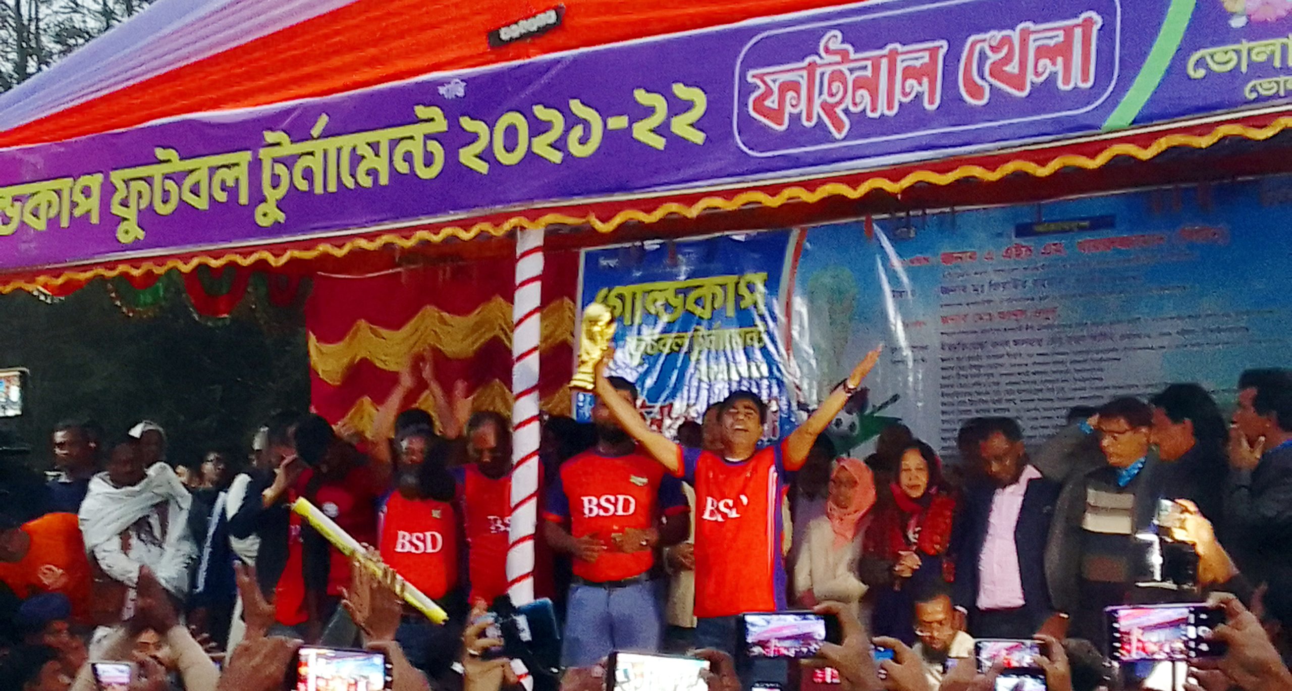 চাঁপাইনবয়াবগঞ্জের ভোলাহাট পাবলিক ক্লাব আয়োজিত গোল্ডকাপ ফুটবল টুর্ণামেন্ট ২০২১-২০২২ এর ফাইনাল খেলা ও পুরস্কার বিতরণ অনুষ্ঠান অনুষ্ঠিত হয়েছে। শনিবার বিকেলে ভোলাহাট পাবলিক ক্লাব মাঠে প্রধান অতিথি হিসেবে উপস্থিত ছিলেন বাংলাদেশ আওয়ামী লীগের সভাপতিমন্ডলীর সদস্য ও রাজশাহী সিটি কর্পোরেশনের মেয়র এ.এইচ.এম খায়রুজ্জামান লিটন।