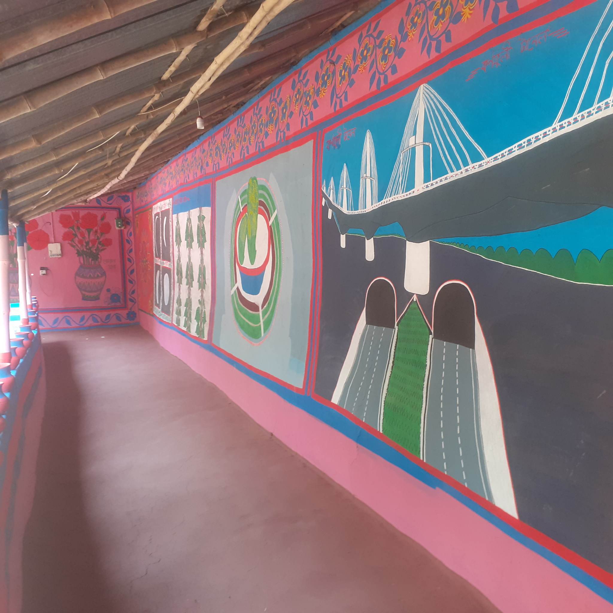 আরো রয়েছে গ্রামবাংলার আবহমান চিত্র, বঙ্গবন্ধু টানেল, বাংলাদেশের মানচিত্র, শহীদ মিনার, শীত মৌসুমের খেজুর গাছে টাঙানো হাঁড়ি, দেশীয় ফলমুল। এছাড়াও জাতীয় ফুল, ফল ও বিভিন্ন রকমের গ্রামীণ চিত্র ফুটিয়ে তুলেছেন রঙতুলির আঁচড়ে এ স্বপ্নের বাড়িতে। বাদ যায়নি রাজশাহীর পানের বরজের দৃশ্যটিও। ইতোমধ্যেই সাহিদা খাতুনের স্বপ্নের বাড়ির কথা আশপাশে ছড়িয়ে পড়েছে। দেখতে আসছেন অনেকেই।