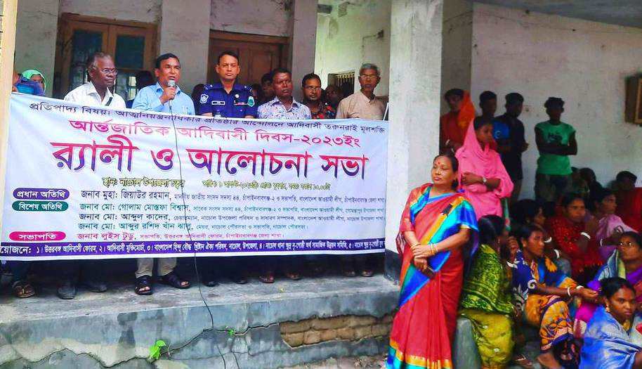 র্যালী শেষে উপজেলা আদিবাসী একাডেমীর সামনে উত্তরবঙ্গ আদিবাসী ফোরামের চাঁপাইনবাবগঞ্জ জেলার সভাপতি লুইস টুডুর সভাপতিতে "আত্মনিয়ন্ত্রণাধিকার প্রতিষ্ঠার আন্দোলনে আদিবাসী তরুনরাই মুল শক্তি"এই প্রতিপাদ্যেকে উপজীব্য করে পথসভায় প্রধান অতিথির বক্তব্য রাখেন উপজেলা পরিষদের চেয়ারম্যান আব্দুল কাদের।