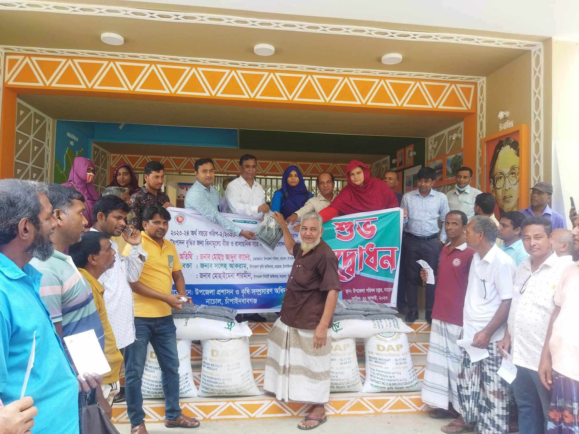 চাঁপাইনবাবগঞ্জের নাচোলে ১হাজার ২শ’ জন কৃষকের মাঝে ২০২৩-২৪ অর্থ বছরে খরিপ-২/২০২৩-২৪ মৌসুমে মাসকালাইয়ের ফসলের আবাদ ও উৎপাদন বৃদ্ধির জন্য বিনামূল্যে বীজ ওরাসায়নিক সার সহায়তা প্রনোদনা কর্মসূচীর উদ্ধোধন হয়েছে।
