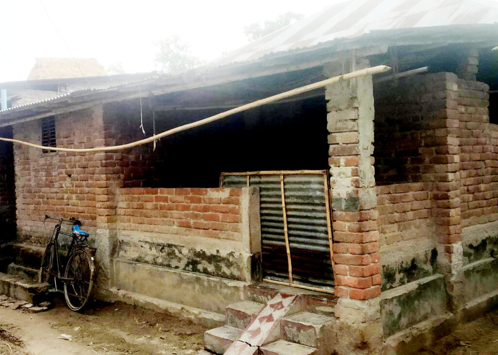 ক্যাপশন-ভোলাহাটে অসহায় রেজাউল করিমের বর্তমান জরাজির্ন-ভগ্ননগ্ন একটি আবাস্থল ঘরের ছবি।