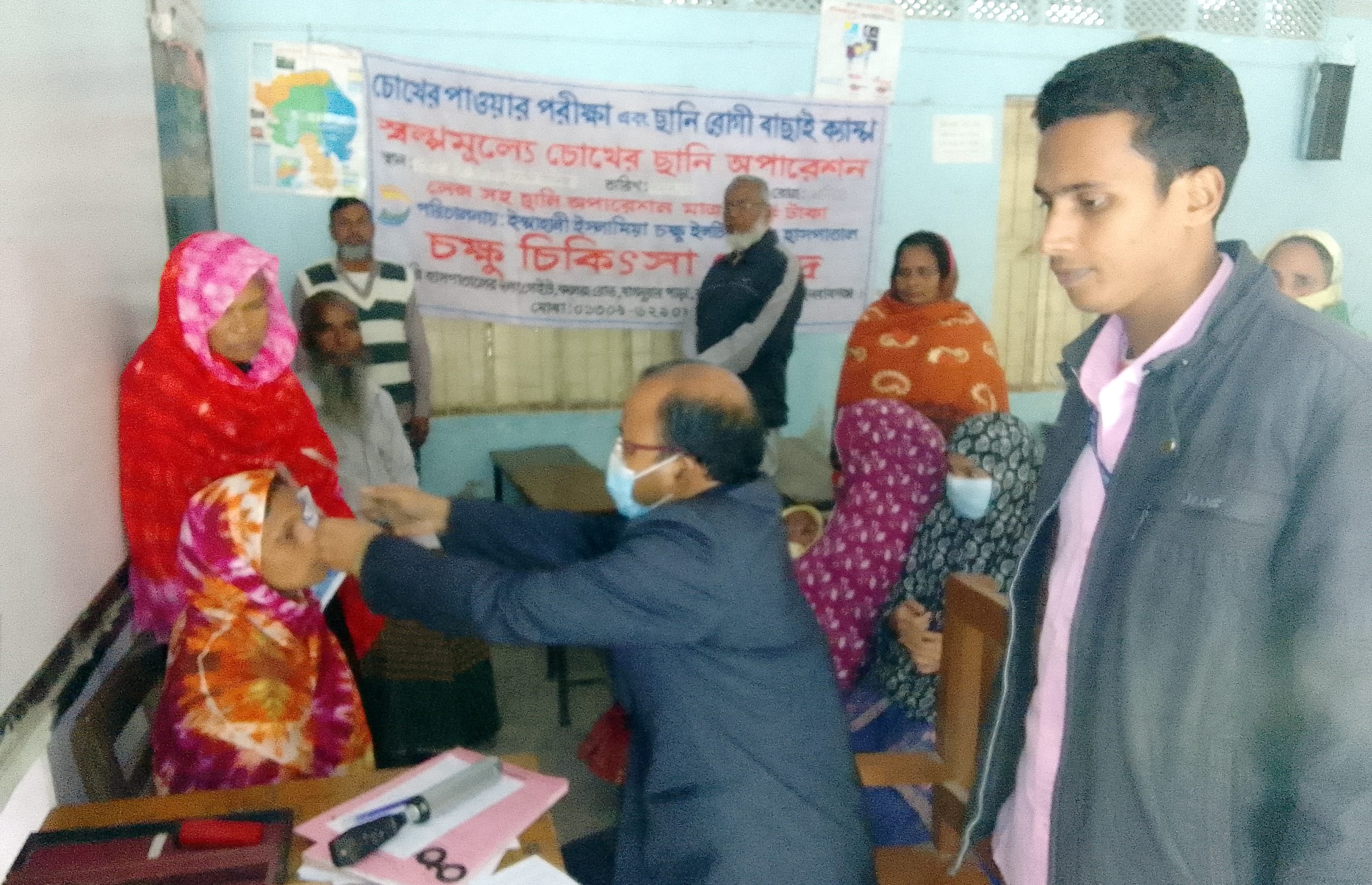 এ সময় ক্যাম্পের পরিচালক মোঃ সাইদুর রহমান, ডাক্তারের সহকারী নাদিম হোসেন উপস্থিত ছিলেন। ১দিনের চক্ষু চিকিৎসা ক্যা¤úে শতাধিক চক্ষু রোগীদের চিকিৎসা ও ব্যবস্থাপত্র দেয়া হয়। এ ক্যাম্পে উপজেলার বিভিন্ন এলাকা থেকে আগত চোখের রোগীদের চোখের পাওয়ার পরীক্ষা, ছানী রোগী বাছাই, চোখে পুঁজ পড়া, পানি পড়া, চোখে মাংস বৃদ্ধি ও ন্যায্যমূল্যে সঠিক চোখের পাওয়ারের চশমা প্রদাণ করা হয়।