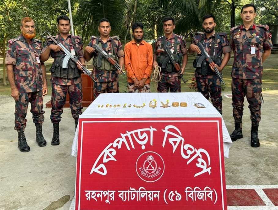 তিনি আরও জানান, এ ঘটনায় শিবগঞ্জ থানায় একটি মামলা দায়েরের মাধ্যমে চোরাকারবারীকে থানায় সোপর্দ করা হয় এবং জব্দকৃত স্বর্ণ ও টাকা ট্রেজারীতে জমা হয়। এর আগে বৃহষ্পতিবার একই ব্যাটালিয়ন একই সীমান্তে একটি বিদেশী আগ্নেয়াস্ত্র ও হাঁসুয়া সহ একজনকে আটক করে।#