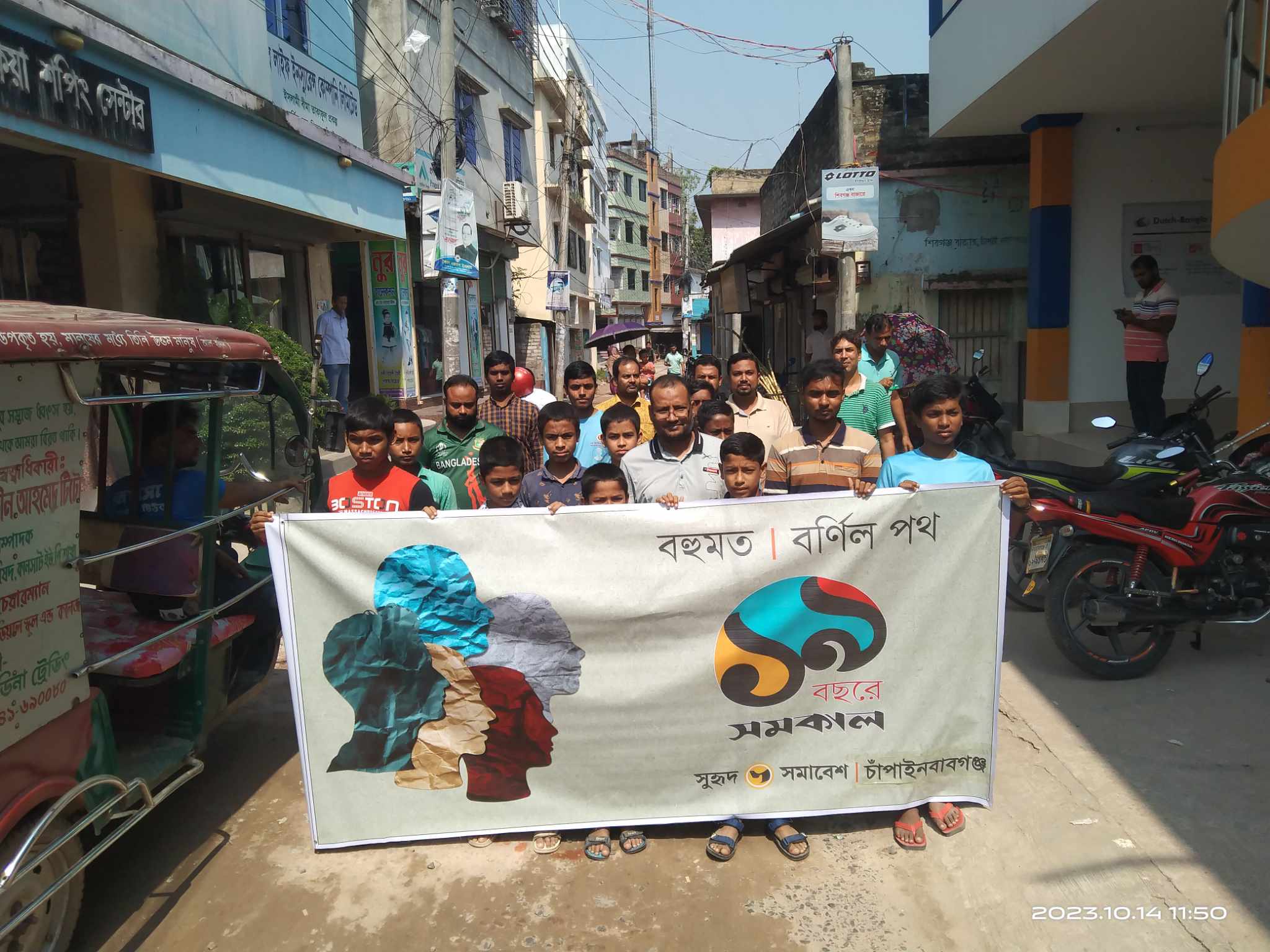 সমকালের প্রতিষ্ঠাবার্ষিকী উপলক্ষে আজ শনিবার সুধী সমাবেশ, কেক কাটা, আলোচনা সভা ও এতিম শিশুদের খাবারের ব্যবস্থা করেন চাঁপাইনবাবগঞ্জের সুহৃদরা। জেলা সুহৃদ সমাবেশের উদ্যোগে সকালে কেয়া শপিং সেন্টারের মিলনায়তনে কেক কেটে কর্মসূচি উদ্বোধন করেন জেলা সুহৃদ সমাবেশের সভাপতি ও নাগরিক কমিটির সদস্য সচিব মনির হোসেন। পরে আলোচনা সভা অনুষ্ঠিত হয়।