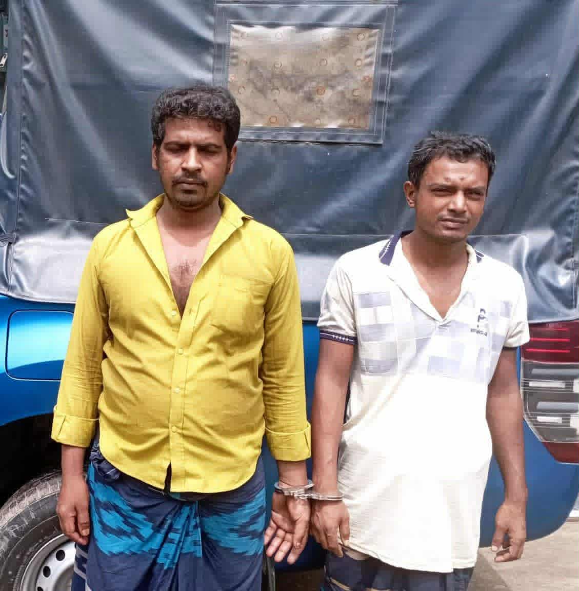 গ্রেফতারকৃতরা হলেন, মো. মাসুদ রানা (৩৩), পিতা মো. তাইফুর রহমান, সাং: রামকৃষ্টপুর। মো. আব্দুর রহিম (৩৫), পিতা মৃত আব্দুর রহমান, সাং: রামকৃষ্টপুর। অভিযান শেষে তাদের ভ্রাম্যমাণ আদালতে সোপর্দ করা হয়। পরে বিজ্ঞ নির্বাহী ম্যাজিস্ট্রেট অনুজ চন্দ উভয় আসামিকে ২ (দুই) মাসের বিনাশ্রম কারাদণ্ড এবং ১০০ (একশত) টাকা করে অর্থদণ্ড প্রদান করেন।