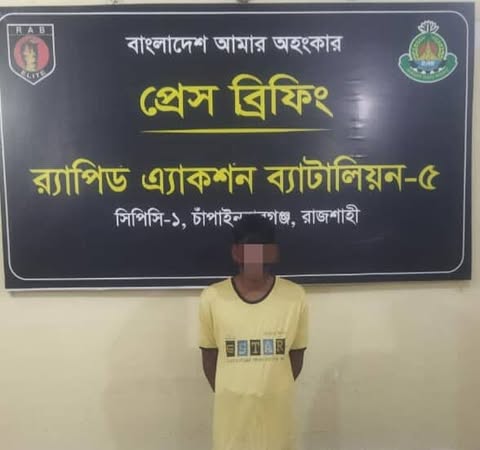 র্যাব জানায়, মাদকের বিরুদ্ধে প্রতিরোধমূলক অভিযানের অংশ হিসেবে দীর্ঘদিন ধরে আইনশৃঙ্খলা বাহিনী মাদক ব্যবসায়ীদের উপর নজরদারি চালাচ্ছিল। এরই ধারাবাহিকতায় র্যাব-৫ এর সিপিসি-১ চাঁপাইনবাবগঞ্জ ক্যাম্পের একটি দল মঙ্গলবার দুপুর ১২. ৩০ মি : টার দিকে সদর থানার ঢাকা বাস স্ট্যান্ড এলাকায় অভিযান পরিচালনা করে। এ সময় মো. আপন আমীর হামজা (৩৫) নামের এক ব্যক্তিকে সন্দেহজনকভাবে ঘোরাঘুরির সময় থামিয়ে তল্লাশি চালিয়ে তার কাছ থেকে ৫০ গ্রাম হেরোইন উদ্ধার করা হয়। গ্রেপ্তারকৃত আপন আমীর হামজা চাঁপাইনবাবগঞ্জ সদর উপজেলার নারায়ণপুর ইউনিয়নের বালুবাড়ি গ্রামের বাসিন্দা।