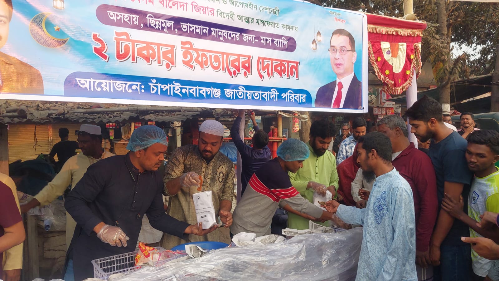 চাঁপাইনবাবগঞ্জ জাতীয়তাবাদী পরিবারের উদ্যোগ, চলতি পথে মিলছে দুই টাকায় ইফতার