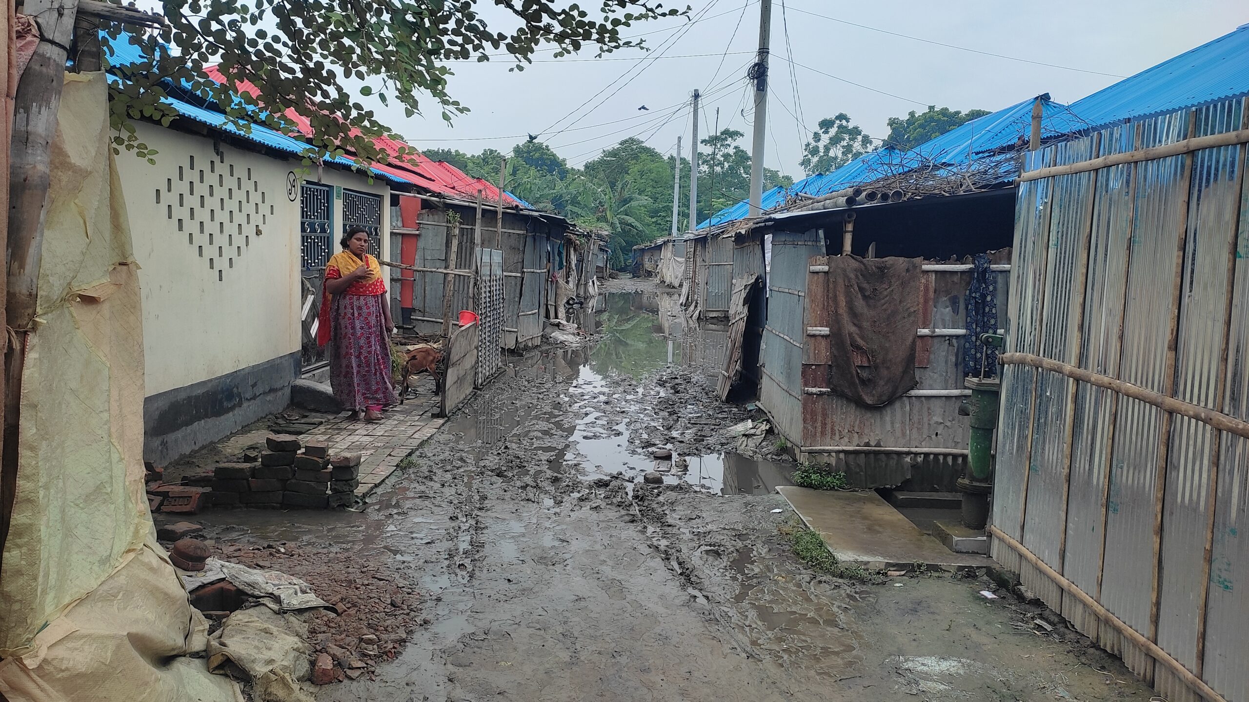 কানসাটের সাথী বেগম,বলেন আমাদের কানসাটের আশ্রয়ন প্রকল্পের অবস্থার দুই সারির বাড়ির মধ্যে যে প্রায় ছয় ফুট করে রাস্তা ছাড়া আছে তা দীর্ঘদিন যাবত পানি ধরে থাকায় আমাদের জীবন অতিষ্ঠ হয়ে উঠেছে।