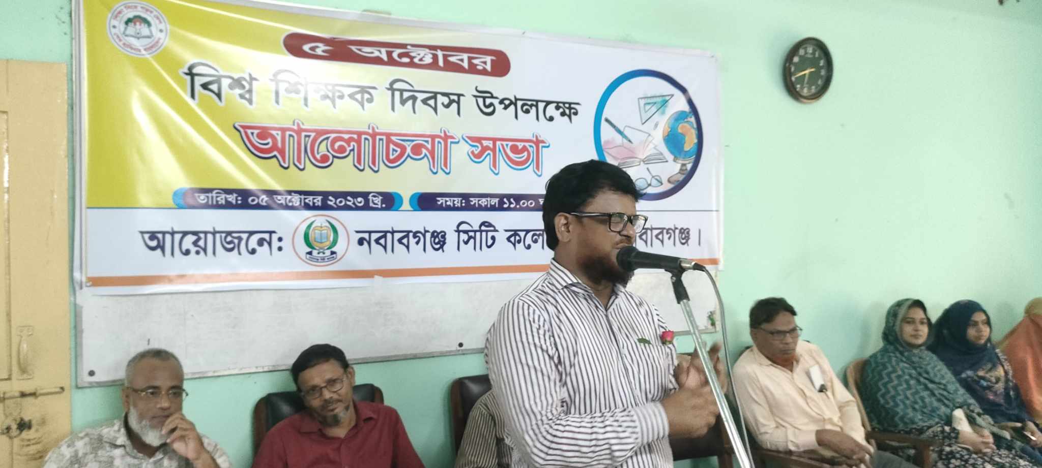 চাঁপাইনবাবগঞ্জে বিশ্ব শিক্ষক দিবস-২০২৩ উদযাপিত হয়েছে। বৃহস্পতিবার (৫ অক্টোবর) চাঁপাইনবাবগঞ্জ সিটি কলেজের সন্মেলন কক্ষে দিবসটি পালন করা হয়। এ উপলক্ষে সকালে সিটি কলেজের অধ্যক্ষ তরিকুল আলম সিদ্দিকী নয়নের নেতৃত্বে একটি র্যালি কলেজের সবুজ চত্তর ও রাস্তা প্রদক্ষিণ করে।