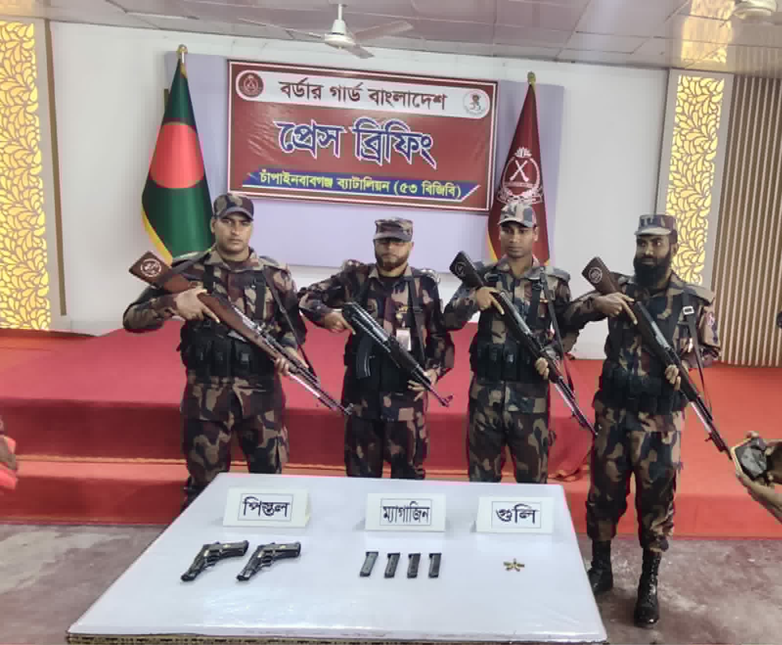 চাঁপাইনবাবগঞ্জ সীমান্তে বিজিবি’র অভিযান, বিদেশি পিস্তল ও গুলি উদ্ধার