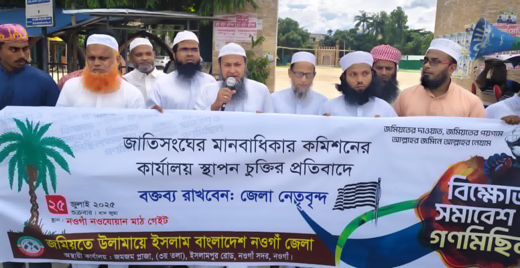 জাতিসংঘের মানবাধিকার কমিশনের কার্যালয় স্থাপনের প্রতিবাদে নওগাঁয় জমিয়তের ডাকে বিক্ষোভ সমাবেশ