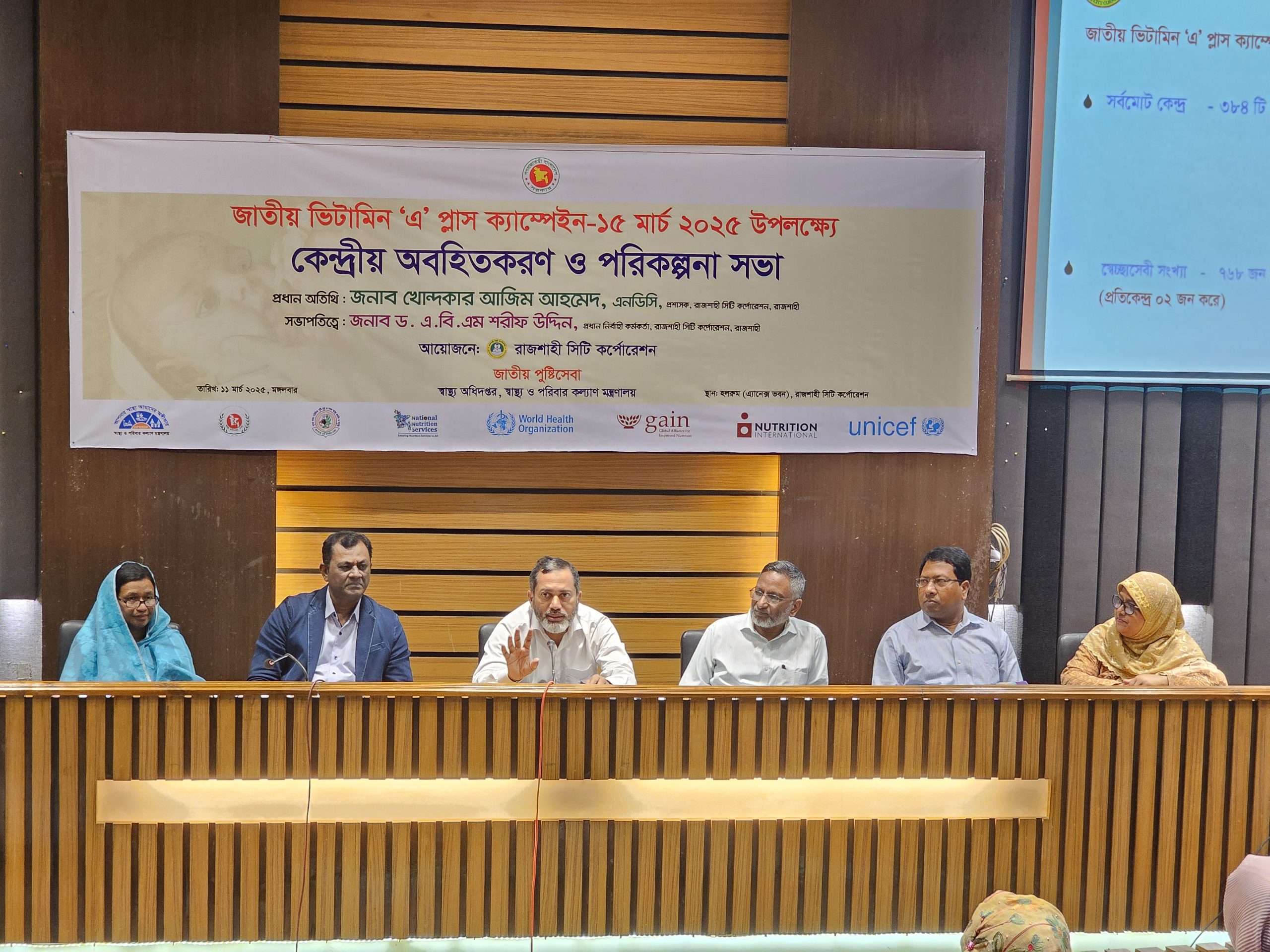 জাতীয় ভিটামিন ‘এ’ প্লাস ক্যাম্পেইন-২০২৫ উপলক্ষে রাসিকের কেন্দ্রীয় অবহিতকরণ ও পরিকল্পনা সভা অনুষ্ঠিত