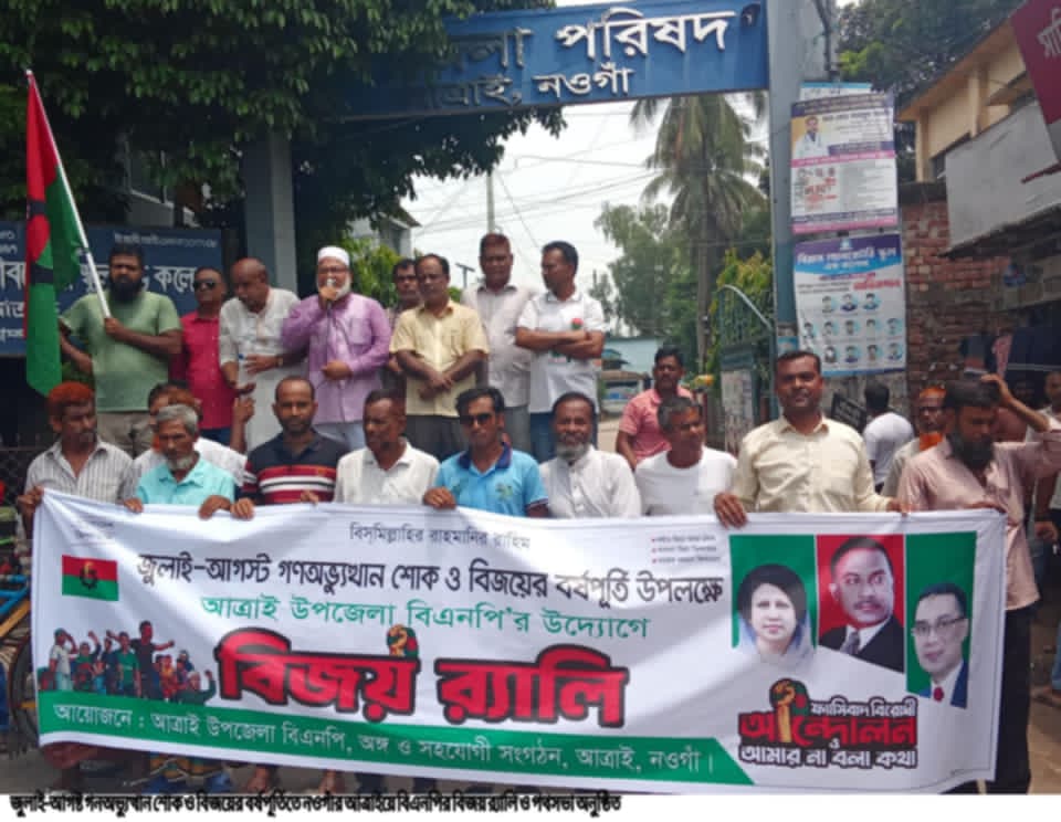 বিএনপির বিজয় র্যালি ও সংক্ষিপ্ত পথসভা অনুষ্ঠানে প্রধান অতিথি হিসেবে উপস্থিত ছিলেন ও বক্তব্য দেন উপজেলা বিএনপির সাধারণ সম্পাদক তসলিম উদ্দিন। উক্ত পথ সভায় আরো বক্তব্য রাখেন -নওগাঁ জেলা যুব দলের সিনিয়র যুগ্ম আহ্বায়ক কে এম রওশন, উপজেলা বিএনপি যুগ্ম সাধারণ সম্পাদক, আব্দুল মান্নান সরদার,সাংগঠনিক সম্পাদক, আবুবকর সিদ্দিক, কামরুল হাসান সাগর,যুবদলের সিনিয়র যুগ্ম আহ্বায়ক খোরশেদ আলম, যুগ্ম আহ্বায়ক পারভেজ ইকবাল,আশরাফুল ইসলাম লিটন, স্বেচ্ছাসেবক দলের আহ্বায়ক আবুল কালাম আজাদ।