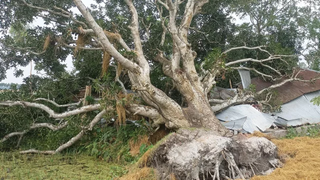 স্থানীয় ও প্রত্যক্ষদর্শী এসারুল্লাহ জানান, মঙ্গলবার রাতে বৃষ্টির সাথে ঝড় শুরু হয়, এ সময় বটগাছ উপড়ে পড়লে তারা নিচে পড়ে যায়। নিহতের মধ্যে একজন ব্যবসায়ী ও স্থানীয় কয়েকজন দোকানে বসে ছিলেন।#