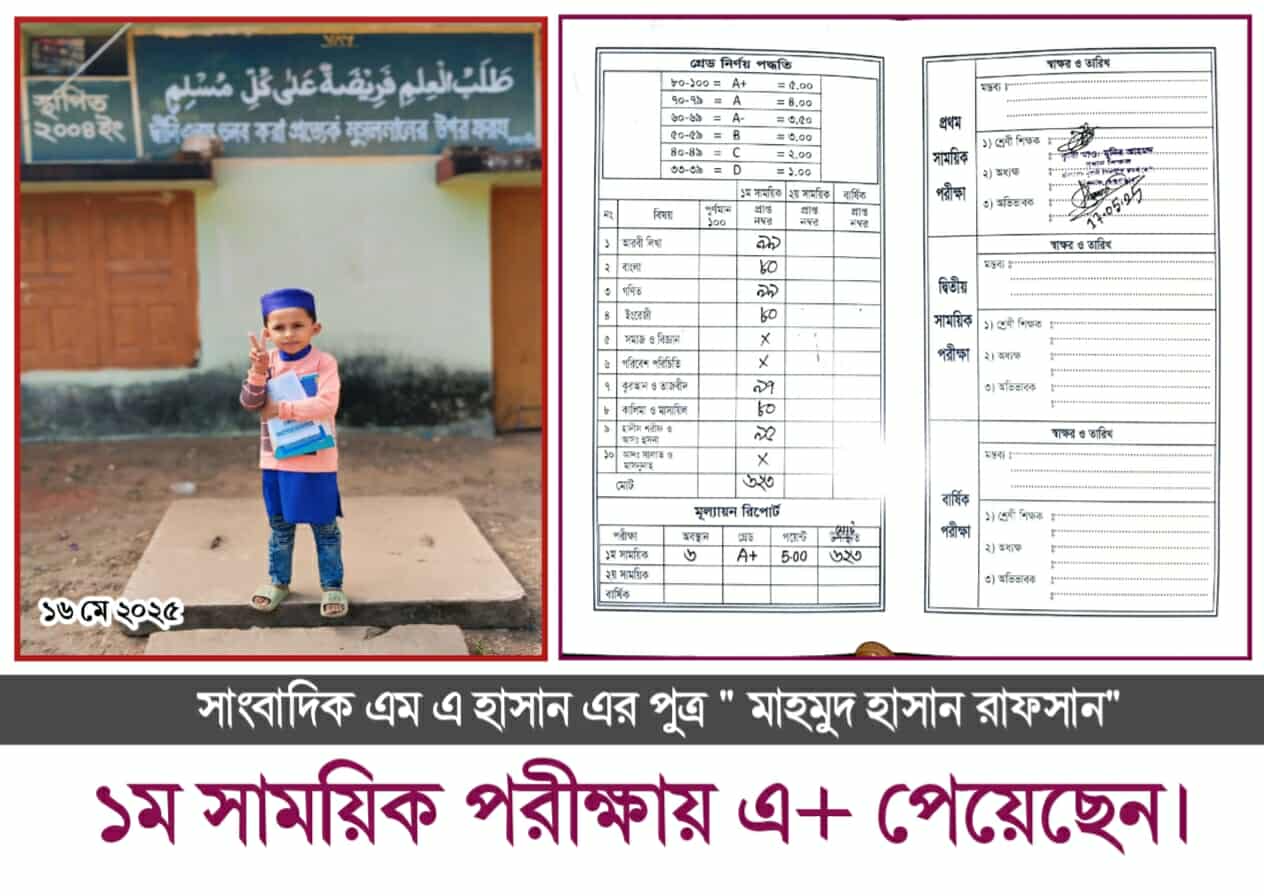 টেকনাফে সাংবাদিক পুত্র ১ম সাময়িক পরীক্ষায় জিপিএ-৫ অর্জন