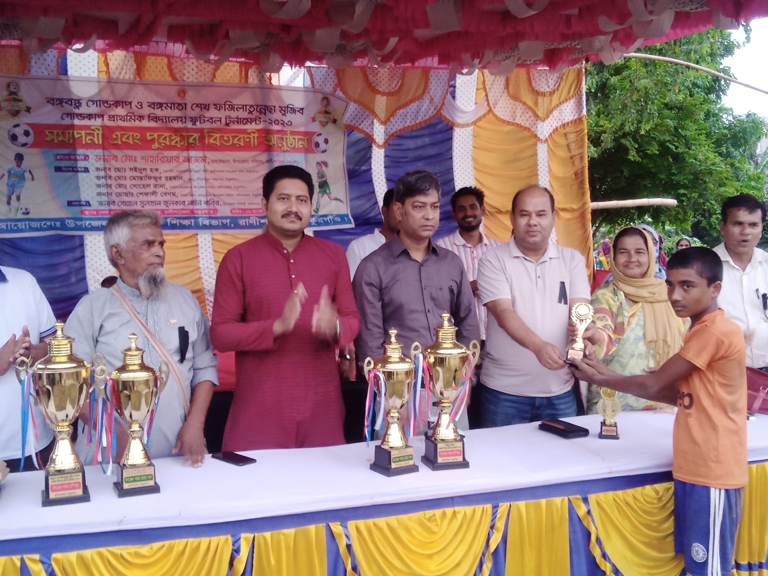 ঠাকুরগাঁওয়ের রানীশংকৈল উপজেলা প্রাথমিক শিক্ষা বিভাগের আয়োজনে ৩ আগস্ট রোজ বৃহস্পতিবার বিকালে শেখ রাসেল মিনি স্টেডিয়ামে বঙ্গবন্ধু গোল্ডকাপ ও বঙ্গমাতা শেখ ফজিলাতুন্নেছা মুজিব গোল্ডকাপ সরকারি প্রাথমিক বিদ্যালয়ের ফুটবল টুর্নামেন্টের সমাপনী ও পুরুস্কার বিতরনি অনুষ্ঠান সম্পন্ন হয়৷