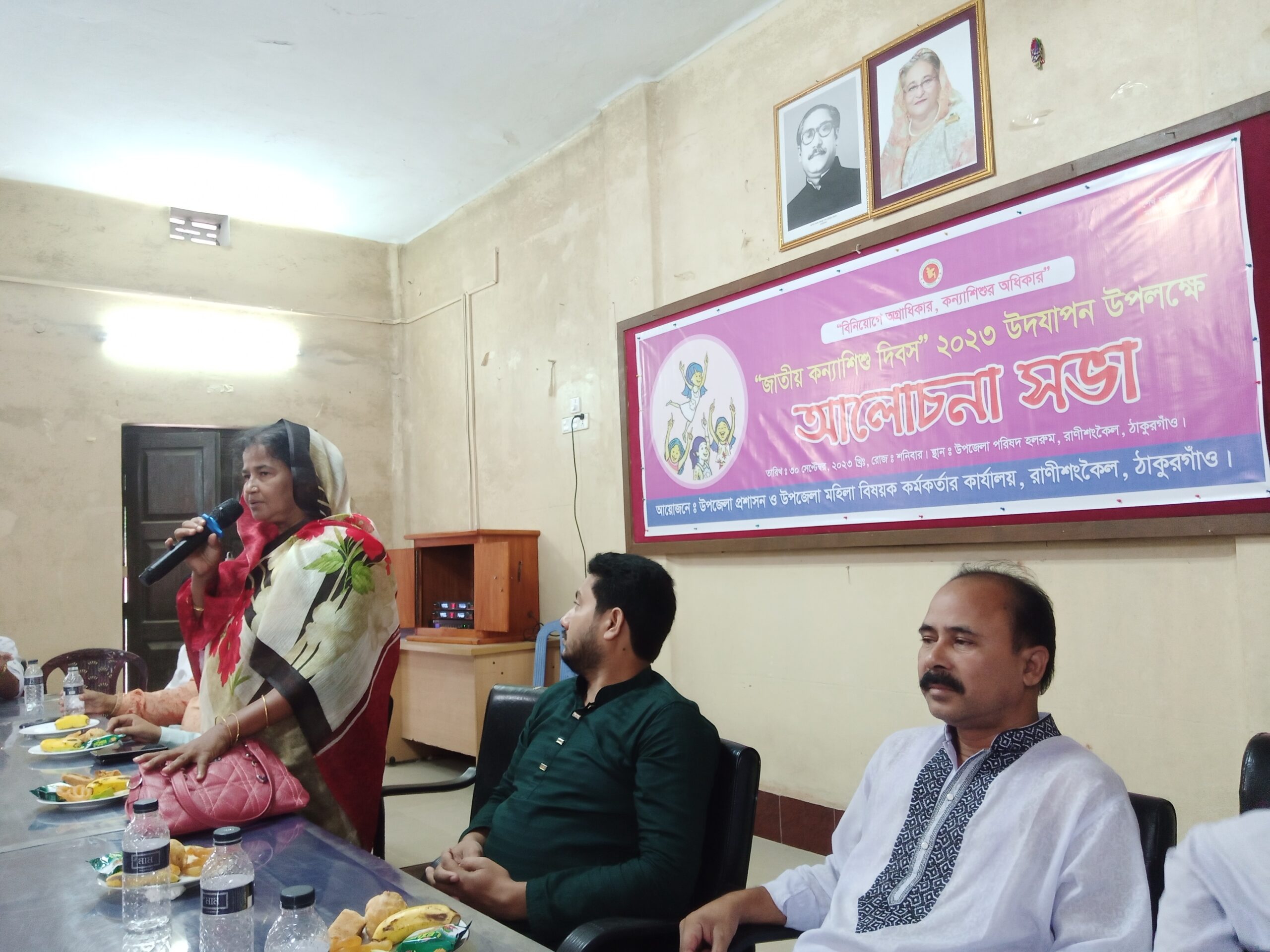 "বিনিয়োগে অগ্রাধিকার,কন্যা শিশুর অধিকার" এই শ্লোগান'কে সামনে রেখে ঠাকুরগাঁওয়ের রানীশংকৈল উপজেলা প্রশাসন, মহিলা ও শিশু বিষয়ক অধিদপ্তরের আয়োজনে ৩০ সেপ্টেম্বর শনিবার সকাল ১০ টায় জাতীয় শিশু কন্যা দিবস পালিত হয়েছে।