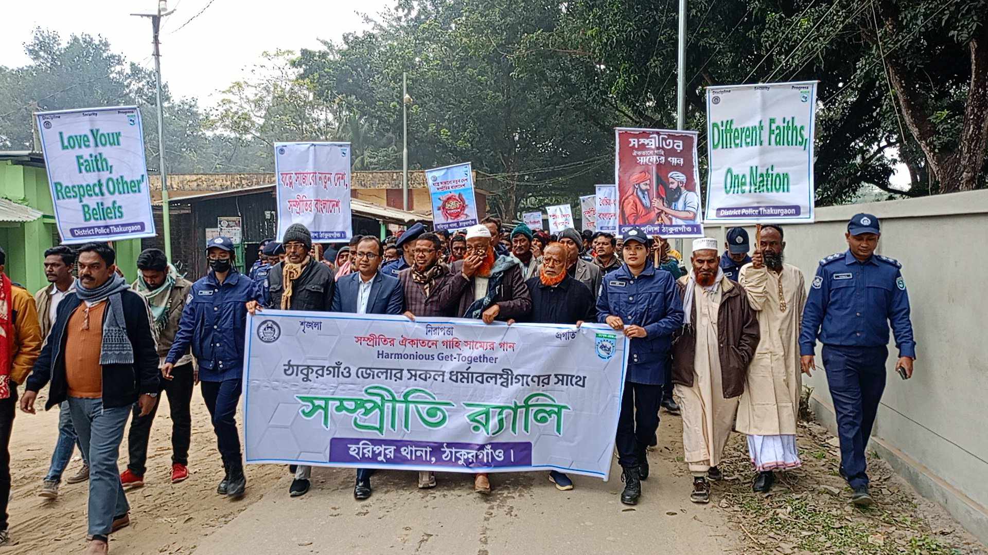 ঠাকুরগাঁও প্রতিনিধি: সম্প্রীতির ঐক্যতানে গাহি সাম্যের গান এই স্লোগানে সকল ধর্মালম্বীদের নিয়ে সম্প্রীতি র্যালি ও সমাবেশ অনুষ্ঠিত হয়েছে। ঠাকুরগাঁওয়ের হরিপুর ।