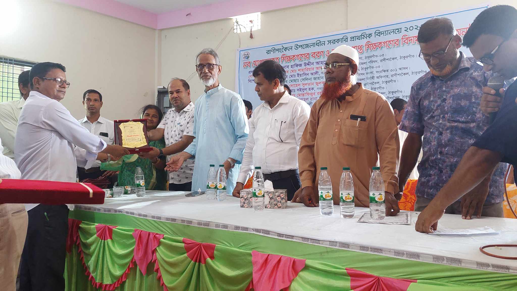 ঠাকুরগাঁওয়ের রাণীশংকৈল সরকারি প্রাথমিক শিক্ষক সমিতির উদ্যোগে বৃহস্পতিবার (২০ জুলাই) দুপুরে শান্তা কমিনিউটি সেন্টারে নব যোগদানকৃত সহকারি শিক্ষকদের বরণ ও অবসরপ্রাপ্ত শিক্ষকদের বিদায় সংবর্ধনা দেয়া হয়। শিক্ষক সমিতির ব্যানারে চাঁদা তুলে অনুষ্ঠান করায় কিছু শিক্ষক ক্ষোভ প্রকাশ করেছেন।