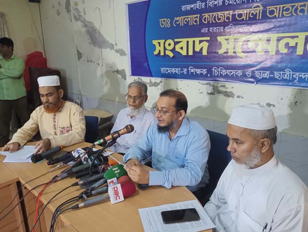 নাজিম হাসান: ডা. গোলাম কাজেম আলী আহমেদের খুনের পুরো বিষয়টির একটা রাজনৈতিক উদ্দেশ্য ছিল। এ হত্যাকান্ড নিয়ে আমরা কিছুটা সন্দেহে করছিলাম। এই খুনের সঙ্গে একটা গোষ্ঠির এজেন্টরা যুক্ত থাকতে পারে। সেই সময় আমরাও নিজেদের জীবন নিয়ে শঙ্কিত ছিল। আমাদের যখন পুলিশ থেকে বলা হচ্ছিল নিজের নিরাপত্তা নিয়ে চলেন। স্ইে সময় আমরাও গানম্যান পর্যন্ত ভাড়া করতে বাধ্য হয়ে ছিলাম। খুনিদের গ্রেপ্তার ও শাস্তির দাবিতে রাজশাহী মেডিকেল কলেজ শিক্ষক, চিকিৎসক ও ছাত্র-ছাত্রীদের আয়োজনে বুধবার (৩০ অক্টোবর) বেলা ১১ টার দিকে মেডিকেল কলেজ সম্মেলন কক্ষে ন্যাশনাল ডক্টরস ফোরাম রাজশাহীর সাধারণ সম্পাদক ও রাজশাহী মেডিকেল কলেজের রিউমাটলজি বিভাগের সহকারী অধ্যাপক ডা. এম মুর্শেদ জামান মিঞা এ কথা বলেন।