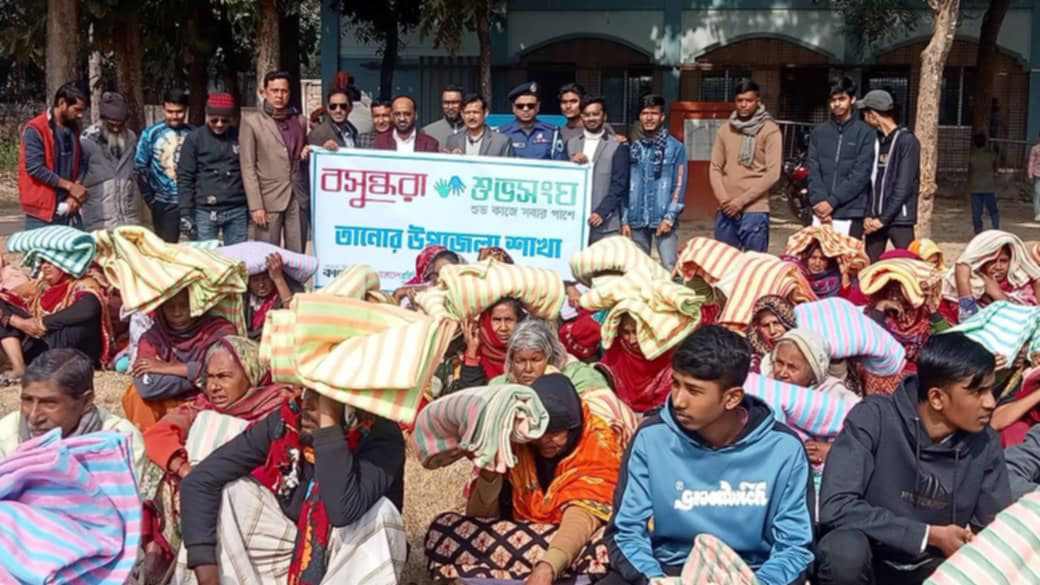 তানোরে অসহায় ১০০ মানুষের মাঝে বসুন্ধরা শুভসংঘের শীতবস্ত্র বিতরণ