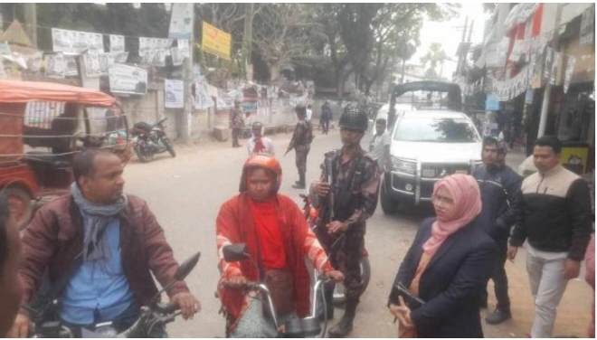 জানাগেছে, আজ (শনিবার) ৬ জানুয়ারী, দুপুর ১-১৫ মিনিটে তানোর উপজেলা সদর থানার মোড়ে, রাজশাহী-১’ তানোর-গোদাগাড়ী জাতীয় সংসদ নির্বাচনে আচরণ বিধিমালার দায়িত্ব প্রাপ্ত এক্সিকিউটিভ ম্যাজিস্ট্রেট ও সহকারী কমিশনার (ভূমি) আবিদা সিফাত, সঙ্গীয় ফোর্স নিয়ে তানোর উপজেলা সদর থানা মোড়ে অভিজান পরিচালনা করেন। এসময় তিনি নির্বাচনি আচরণ বিধি লঙ্ঘন করার দ্বায়ে মোটরসাইকেল আরোহীদের ভ্রাম্যমাণ আদালতে জরিমনা প্রদান করেন।#