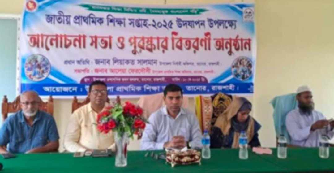 মোঃ মমিনুল ইসলাম মুন, বিশেষ প্রতিনিধি : মানসম্মত শিক্ষা নিশ্চিত করি, বৈষম্যমুক্ত বাংলাদেশ গড়ি” এ প্রতিপাদ্যেকে সামনে রেখে রাজশাহীর তানোরে জাতীয় প্রাথমিক শিক্ষা সপ্তাহ-২০২৫ উদযাপন উপলক্ষে শিক্ষামূলক সাংস্কৃতিক অনুষ্ঠান, পুরষ্কার বিতরণ ও আলোচনা সভা অনুষ্ঠিত হয়েছে।