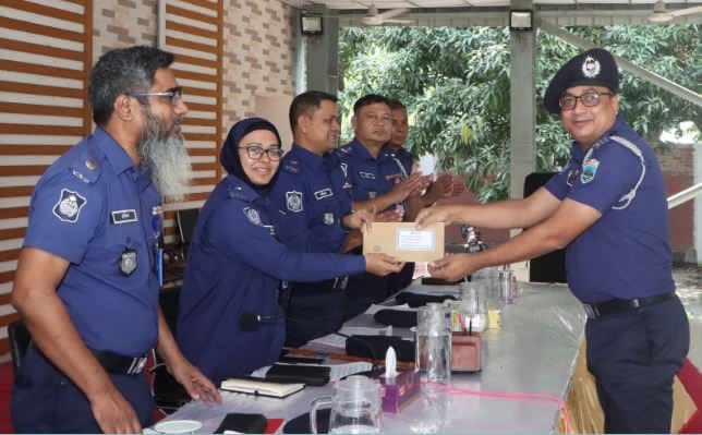 বিশেষ প্রতিনিধি: সেপ্টেম্বর/২০২৫ মাসের মাসিক কল্যান ও অপরাধ পর্যালোচনা সভায় থানার সার্বিক কর্ম-মূল্যায়নে রাজশাহী জেলার শ্রেষ্ঠ থানা হিসেবে ৩য় বারের মতো "বাঘা থানা", নির্বাচিত হওয়ায় " টীম বাঘা" এর সকল অফিসার ও ফোর্সের প্রতি বিশেষ কৃতজ্ঞতা প্রকাশ করছেন বাঘা থানার অফিসার ইনচার্জ আফম আছাদুজ্জামান। বৃহসপতিবার রাজশাহী পুলিশ সুপারের কার্যালয়ে সম্মাননা ক্রেস্ট ও আর্থিক পুরষ্কার প্রদান করা হয়েছে।