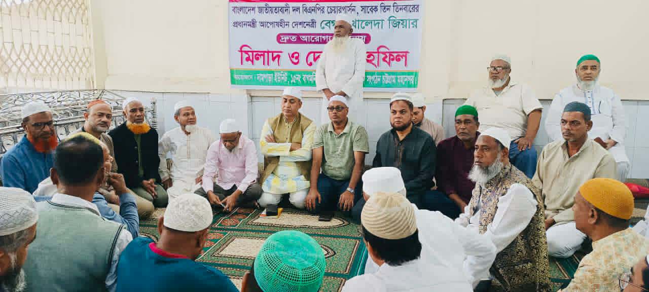মোঃ রোকন উদ্দিন জয়, বিশেষ প্রতিনিধি: চট্টগ্রাম বাংলাদেশ জাতীয়তাবাদী দল—বিএনপির চেয়ারপার্সন, তিনবারের সাবেক প্রধানমন্ত্রী ও আপোষহীন দেশনেত্রী বেগম খালেদা জিয়ার দ্রুত আরোগ্য কামনায় এক মিলাদ ও দোয়া মাহফিল অনুষ্ঠিত হয়েছে। আজ ৩ ডিসেম্বর, বুধবার বিকেলে দামপাড়া জামে মসজিদ প্রাঙ্গণে দামপাড়া বিএনপির উদ্যোগে এই দোয়া ও মিলাদ মাহফিলের আয়োজন করা হয়। মাহফিলে প্রধান অতিথি হিসেবে উপস্থিত ছিলেন চট্টগ্রাম মহানগর বিএনপির যুগ্ম আহ্বায়ক ইয়াছিন চৌধুরী লিটন।